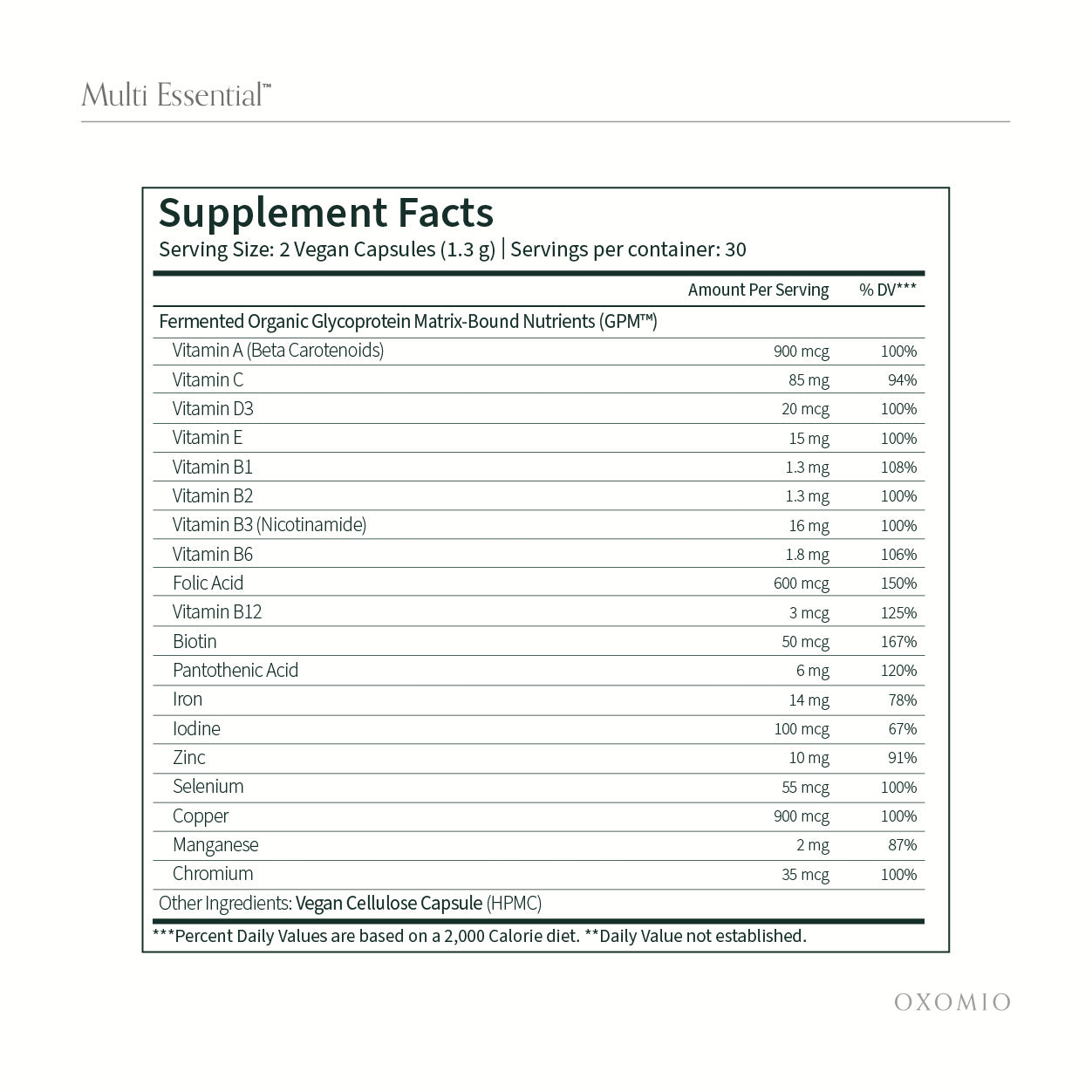 This essential multivitamin is powered exclusively by 19 Fermented Organic Glycoprotein Matrix-Bound Nutrients-GPM™ produced from a nutrient-dense broth bio-transformed by yeast and probiotics.